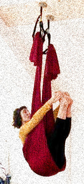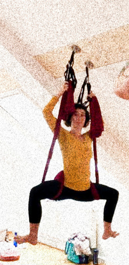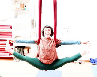 Da mein Herz sich der Präzision und Genauigkeit des Iyengar Yoga verschworen hat und ich unumgänglich an die Förderung der Gesundheit von Körper und Geist glaube, die durch das Üben von Iyengar Yoga entsteht, wird das Arial Yoga für mich eine Forschungsreise sein. Eine Reise, in der ich spüre, forsche und kreiere, wie ich die Prinzipien des Iyengar Yoga im Tuch umsetzen kann. Mich hat die Leichtigkeit, das Luftige und Spielerische im Arial Yoga inspiriert, wo mir dieses auch im Tanz so vertraut ist und ich nutze diese Idee als Sprungbrett in weitere Gefilde des Yoga-Übens.